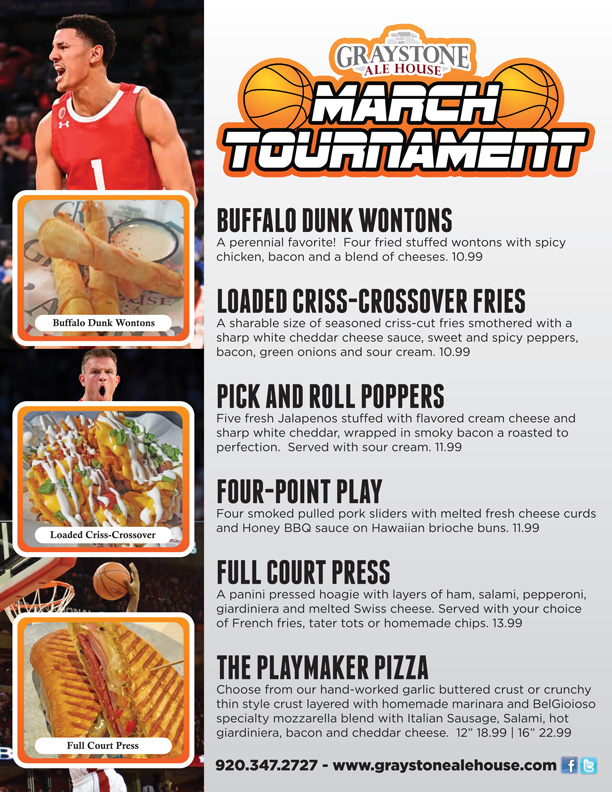 View the menu for Graystone Ale House and restaurants in De Pere WI.
